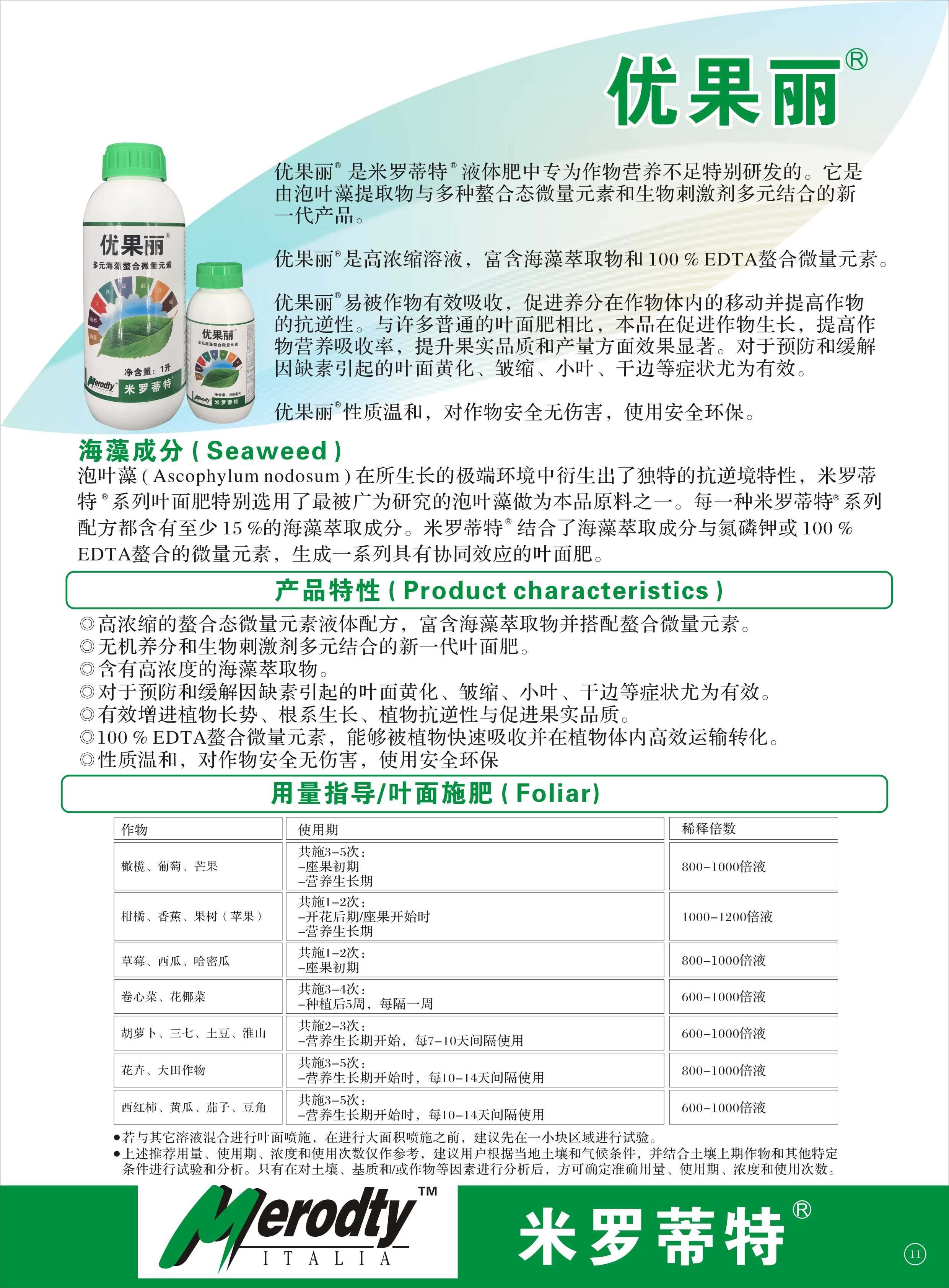 富含多种微量元素,预防和矫正综合缺素症状,如黄叶、花叶、小叶、叶片皱缩等。
